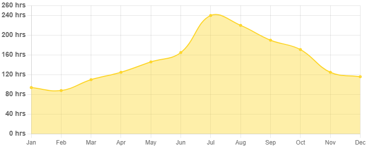 일조 시간은 평균 4~5시간으로 흐린 날이 많으므로, 실내 관광지와의 병행 계획이 필요합니다.
