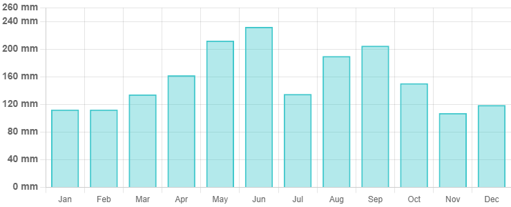 강수량 200~250mm (비 오는 날 평균 14~17일)
