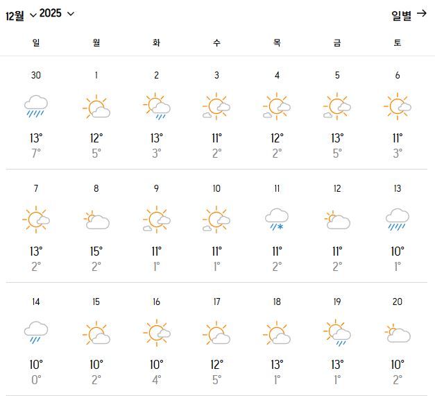 - 2. 12월 기온 변화 (평균·최고·최저)