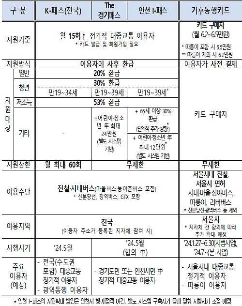 국토부/경기도/인천 별로도 패스가 나뉘어 출시예정이네요.