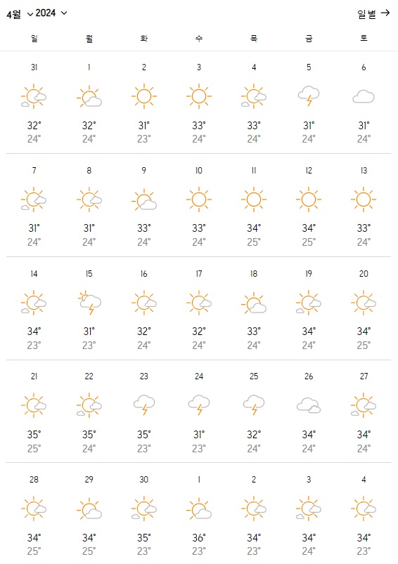 2. 다낭 4월 날씨 온도변화는?