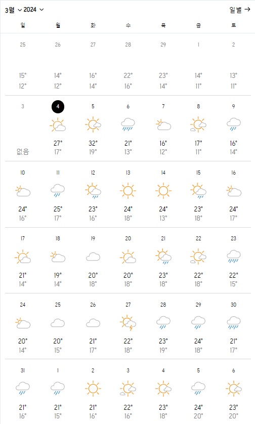 이미지를 클릭하면, 타이베이 3월 자세한 날씨 확인가능합니다.
