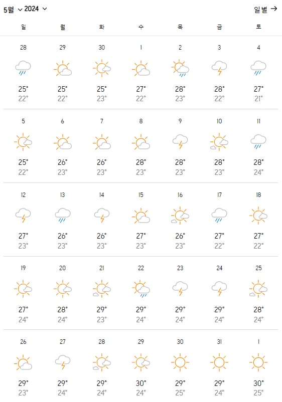 2. 대만 5월 날씨 온도 변화는?