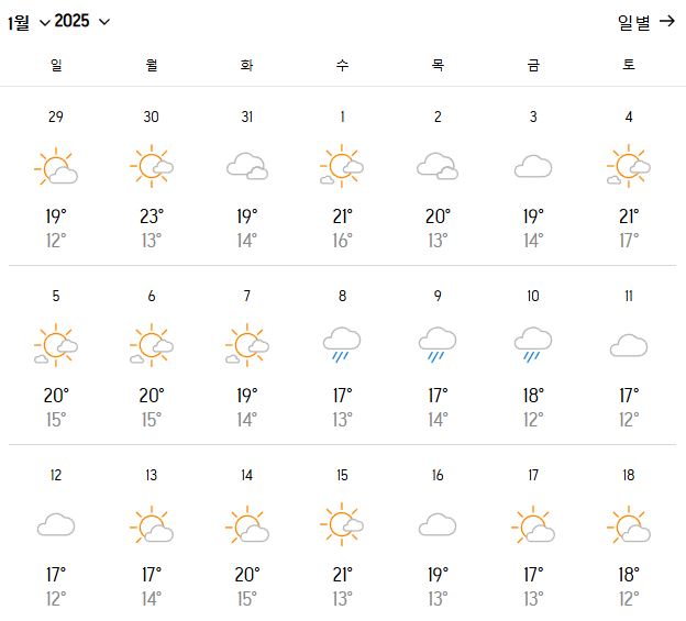 1. 대만 타이베이 1월 날씨 - 맑은 날은?