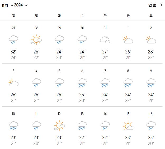2. 대만 타이베이 11월 날씨 온도 변화?