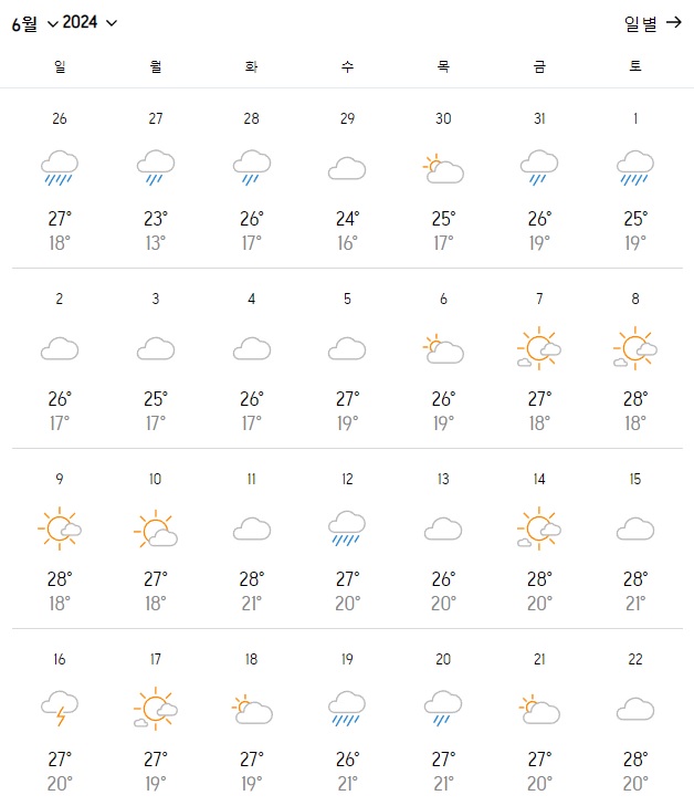 2. 대만 타이베이 6월 날씨 온도 변화는?