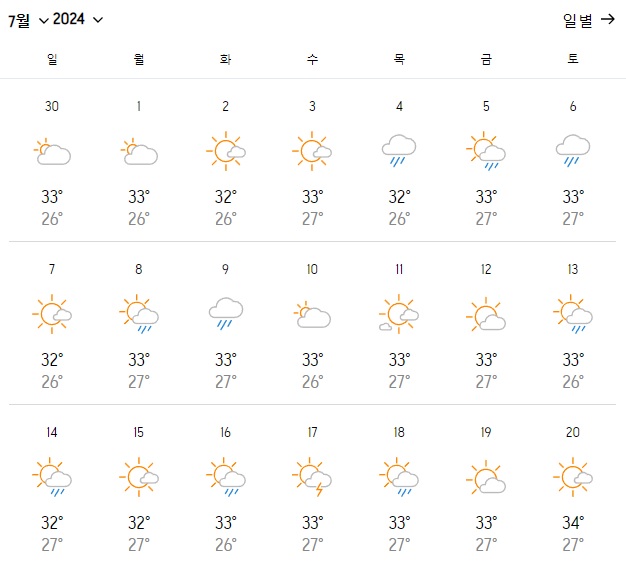 2. 대만 타이베이 7월 날씨 온도 변화는?