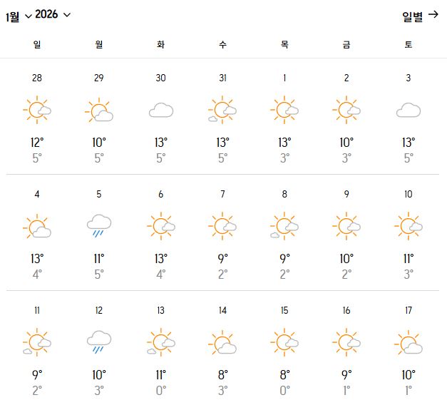 | 날씨 항목 | 1월 평균 |