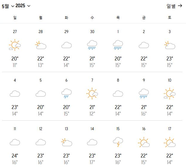 이미지를 클릭하시면 남은 날짜 날씨도 확인이 가능합니다.