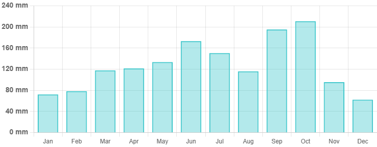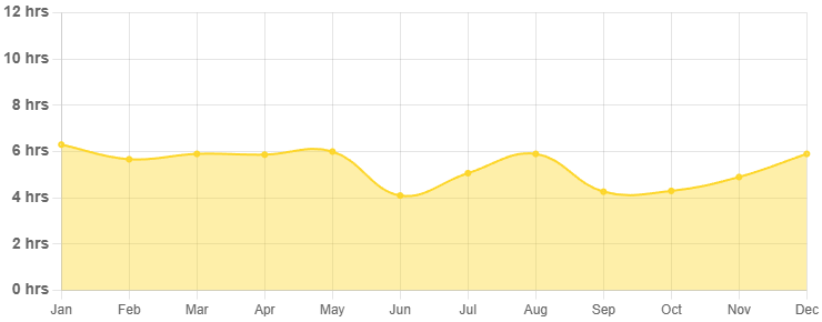 하루 평균 일조량은 5~6시간으로 비가 오는 날이 많지만, 맑은 날을 중심으로 계획을 잡으면 충분히 여행을 즐길 수 있습니다. 날씨를 고려한 실내 관광지도 함께 계획에 포함하는 것이 좋습니다.