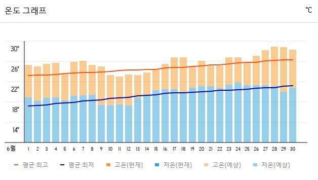 2. 도쿄 6월 기온 변화