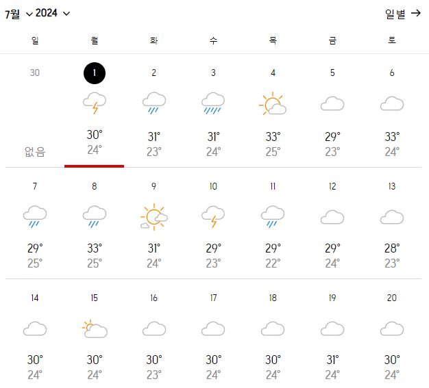 1. 일본 도쿄 7월 날씨 맑은 날은?