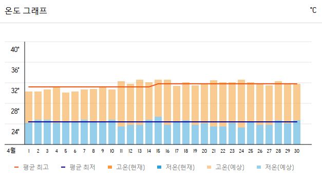- 최저 기온: **25°C** (밤에도 따뜻한 기온 유지)