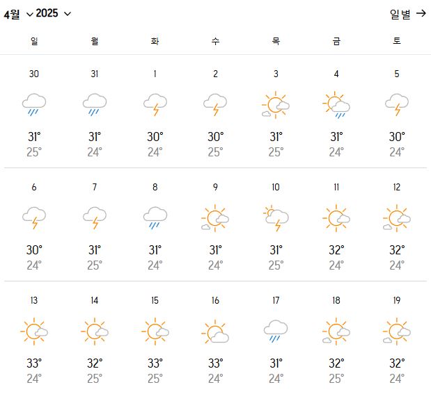 - 최저 기온: **25°C** (밤에도 따뜻한 기온 유지)