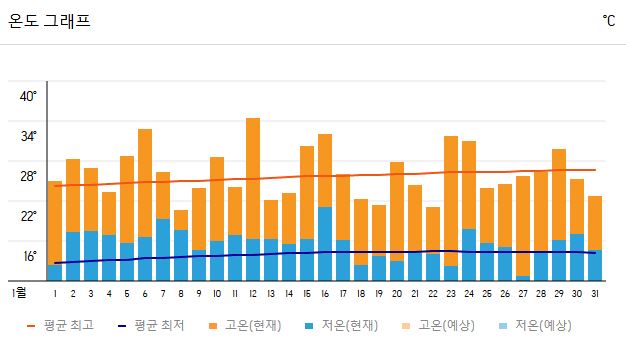 | 평균 낮 최고 기온 | 26~28℃ |