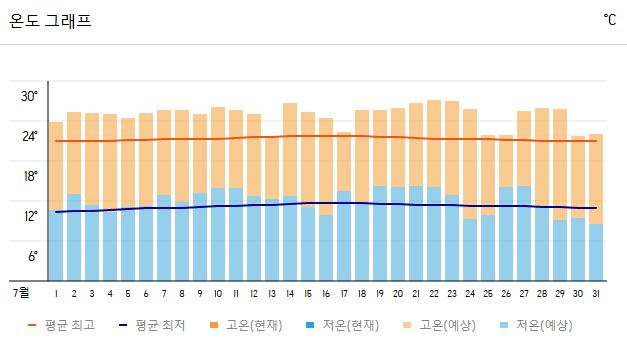 | 평균 낮 최고 기온 | 24~27℃ |