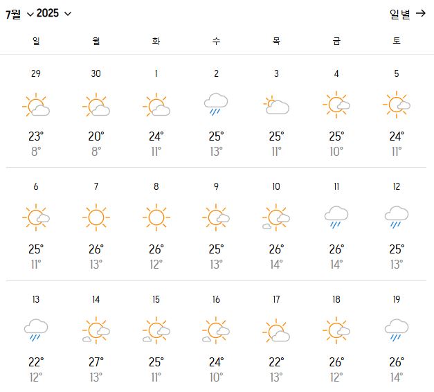 | 평균 낮 최고 기온 | 24~27℃ |