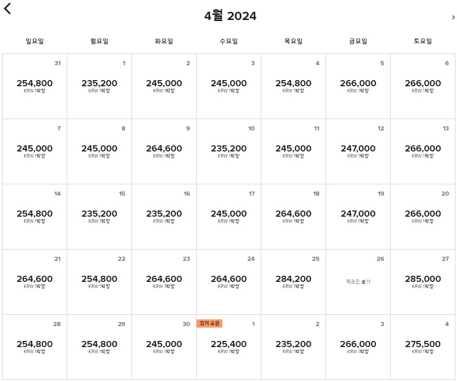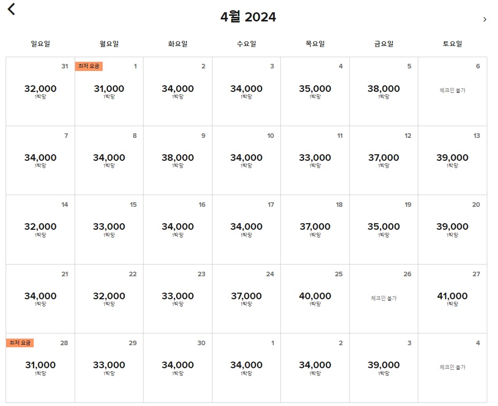 고민이 되실 것 같아서 4월 한 달 룸 only 가격표도 공유드립니다.