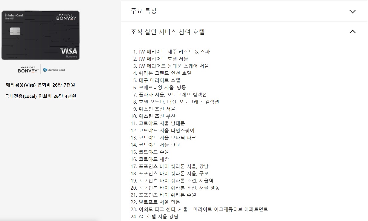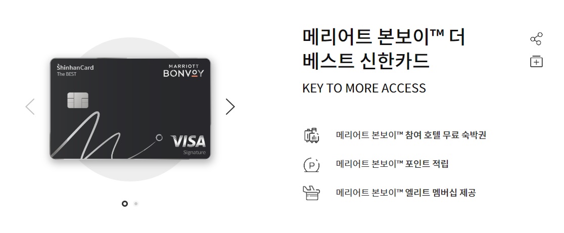 메리어트 호텔에 관심이 있는 분이시라면 발급받는 걸 추천드리는 카드입니다.