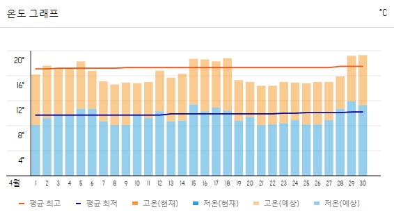 4월 내내 주민과 방문객은 특히 맑고 화창한 날 동안 최대 기온이 18 - 23°C에 이를 것으로 예상할 수 있습니다. 반대로, 최저 기온은 일반적으로 야간과 이른 아침 시간 동안 8-12°C 범위에 속합니다. 이러한 온도 변동은 하루 종일 날씨 변화를 수용하고 샌프란시스코의 역동적인 기후에 대한 편안함과 적응성을 보장하기 위해 의복을 겹쳐 입는 것의 중요성을 강조합니다.