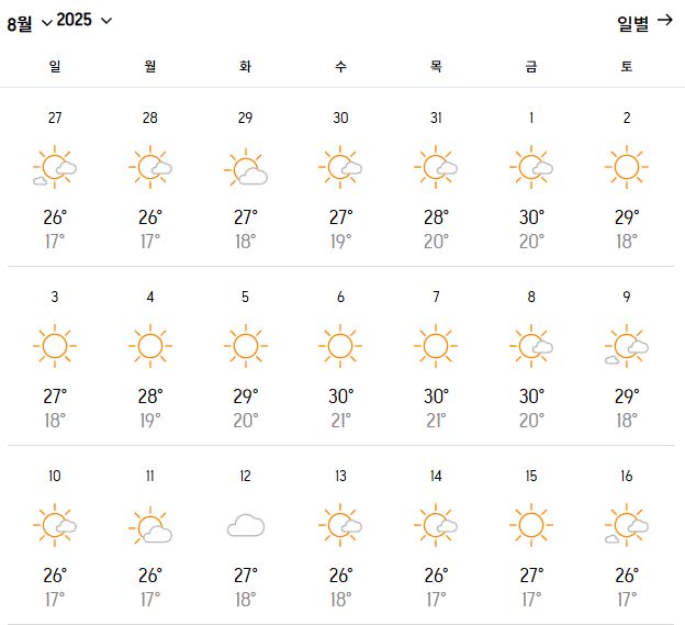 이미지를 클릭하시면 남은 날짜 날씨도 확인이 가능합니다.