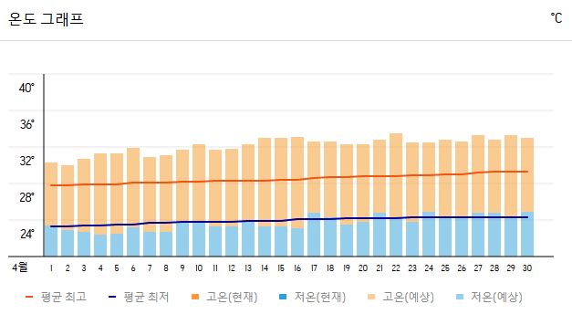 • 최고 기온: **30~32°C** (낮에는 더운 날씨가 지속됨)