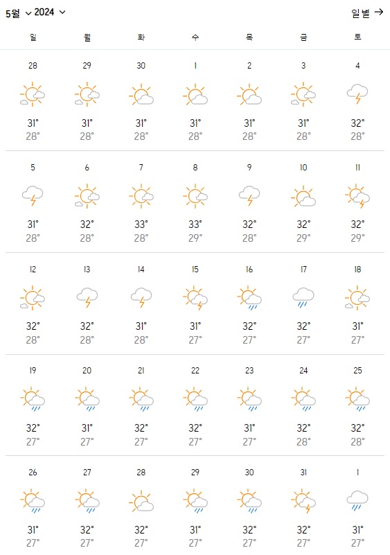 2. 베트남 푸꾸옥 5월 날씨 온도 변화는?