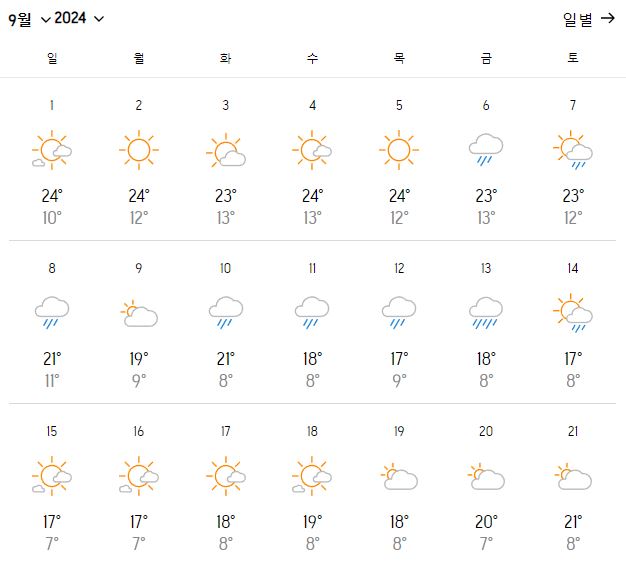 2. 스위스 인터라켄 9월 날씨 온도 변화는?