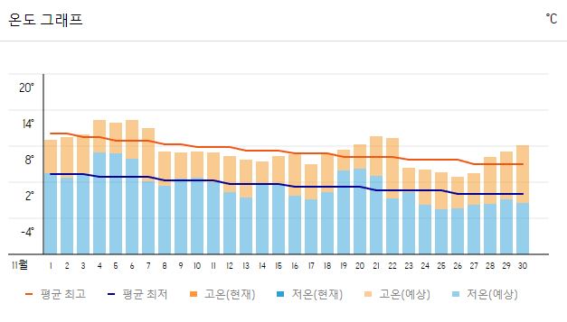 2. 스위스 11월 취리히 날씨 - 기온 변화