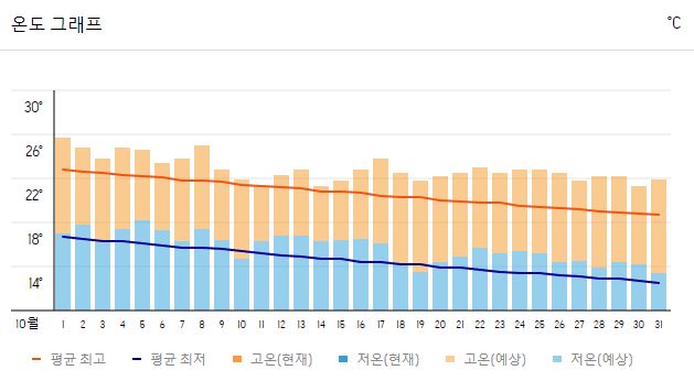 최고 기온은 약 23°C까지 오를 수 있으며, 한낮에는 따뜻한 햇살을 즐기며 야외에서 시간을 보내기 좋습니다. 반면, 최저 기온은 13°C로 내려가 쌀쌀한 날씨를 경험할 수 있으니, 저녁 시간대의 여행을 계획할 때는 적절한 옷차림을 준비해야 합니다.