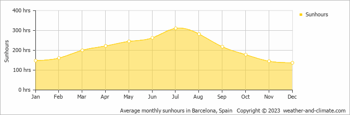 일조량의 경우 강수량과 반대로 7월까지 쭉 증가추세가 이어지니, 7월 전까지 바르셀로나를 다녀오신다면 하루가 길게 느껴지는 효과도 느껴보실 수 있습니다.