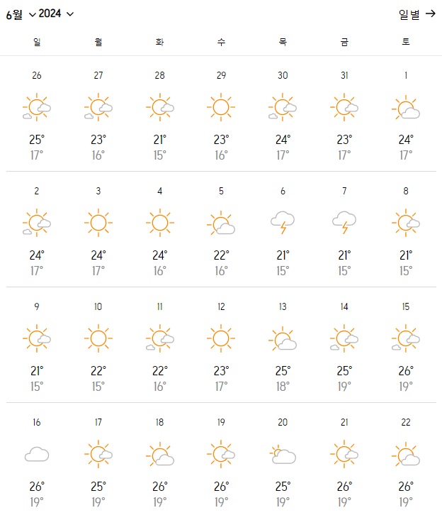 이미지를 클릭하시면 6월 다른 날짜 날씨도 확인이 가능합니다.