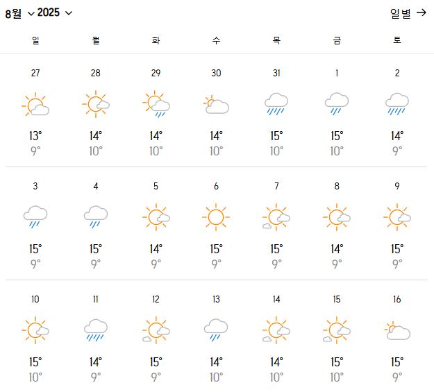이미지를 클릭하시면 남은 날짜 날씨도 확인이 가능합니다.