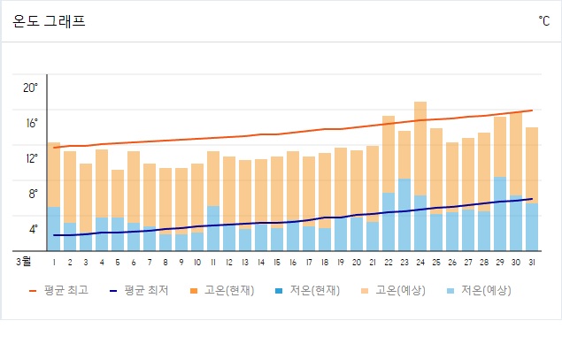 2. 3월 오사카의 기온 변화