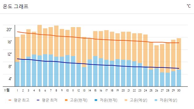 2. 이탈리아 로마 11월 날씨의 온도 변화는?