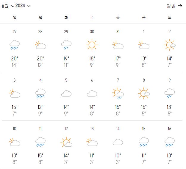 2. 이탈리아 베네치아 11월의 기온 변화