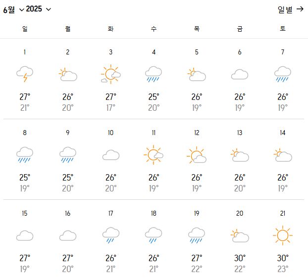 | 제주도 6월 날씨 & 여행 옷차림|장마 시작 전 가장 좋은 시기! (0) | 2025.05.17 |