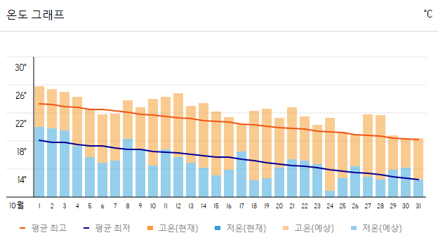 2. 일본 도쿄 10월 날씨 온도 변화는?