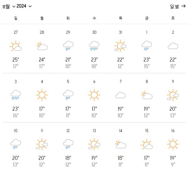 이미지를 클릭하시면 남은 날짜 날씨도 확인할 수 있습니다.