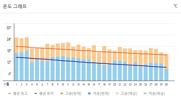 2. 일본 도쿄 11월 날씨 - 기온 변화