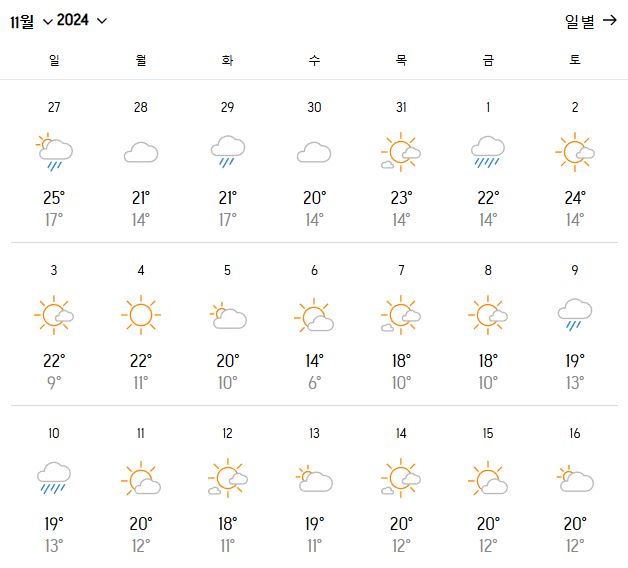 이미지를 클릭하시면 남은 날짜 날씨도 확인이 가능합니다.