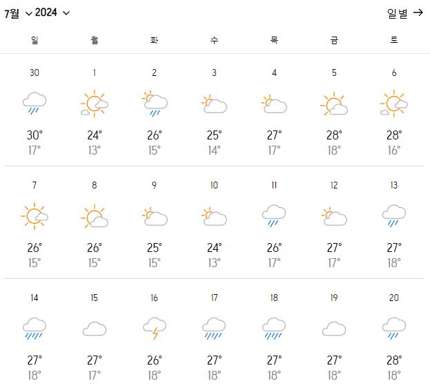 2. 일본 북해도 홋카이도 아사히카와 7월 날씨 온도 변화는?