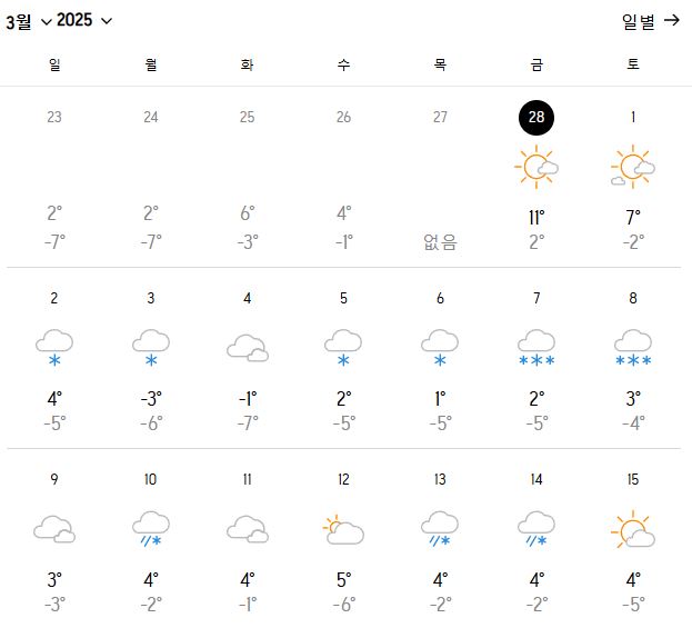 이미지를 클릭하시면 남은 날짜 날씨도 확인이 가능합니다.