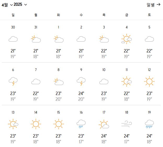 2. 일본 오키나와 4월 날씨 - 기온 변화
