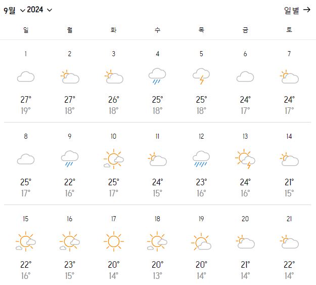 2. 일본 홋카이도 삿포로 9월 날씨 온도 변화는?