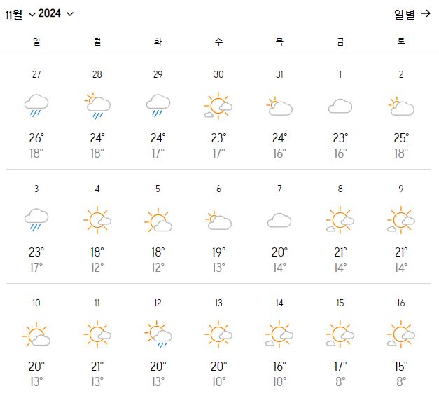 2. 일본 후쿠오카 11월 날씨 온도 변화는?