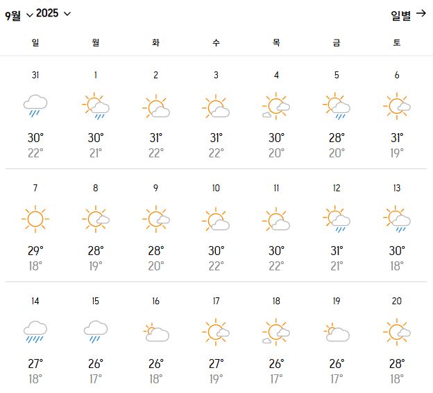 | 9월 제주 날씨 총정리|기온, 비, 일교차, 여행 옷차림까지 (0) | 2025.08.10 |