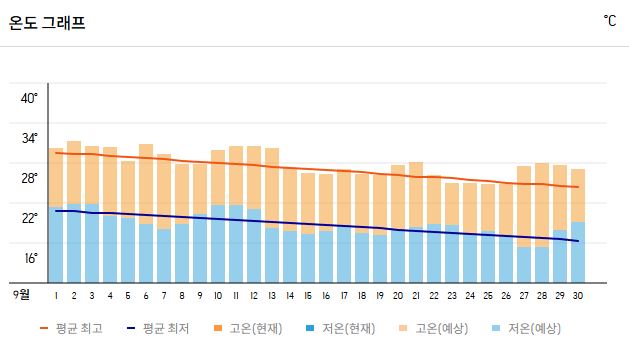 | 평균 낮 최고 기온 | 26~30℃ |