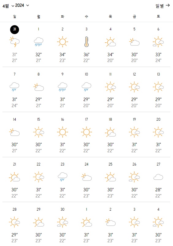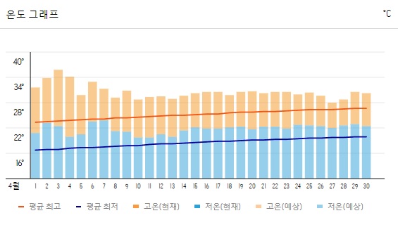 2. 대만 타이중 4월 날씨 온도 변화는?