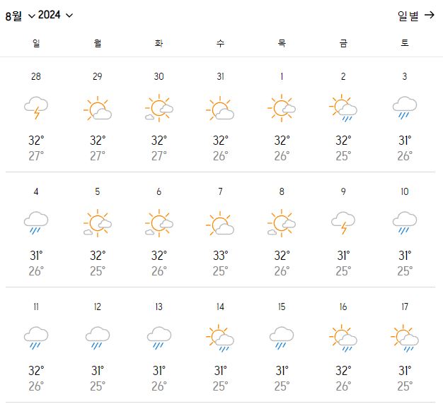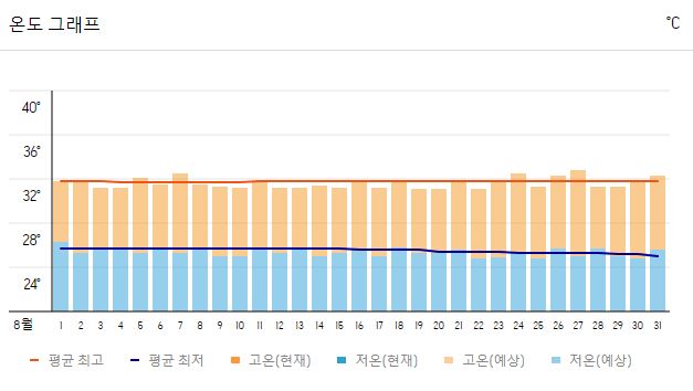 2. 중국 하이난 8월 날씨 온도 변화는?